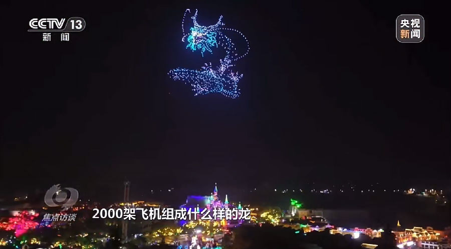 在報道中,6月1日兒童節當晚的寧波方特東方神畫星光璀璨,1000架無人機點亮夜空,交織成龍、鳳、古城、古塔、歷史文化建筑等極具中華傳統文化標識和地方文化特色的圖案,為現場游客帶來一場震撼的視覺盛宴,引起游客們發自內心的贊嘆:“很震撼,真的很震撼,科技給我帶來的震撼比較大,也讓我感到了孩子的一個變化”“看了無人機表演,可能會在孩子心目中種下一個科技的種子”。