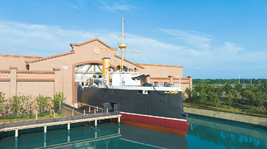 在大型室內有軌漂流項目《致遠 致遠》中,游客乘坐智能運載船穿過時間長河,置身一個多世紀前巨浪滔天的海戰現場,身臨其境地目睹民族英雄浴血奮戰的壯烈景象,見證北洋水師名艦“致遠”號的傳奇一生。
