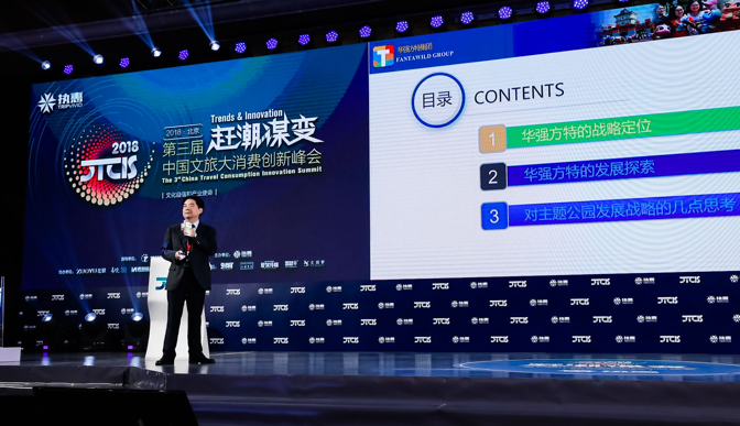 6月7日,由中國旅游研究院、旅游衛(wèi)視指導(dǎo),執(zhí)惠主辦的“2018CTCIS第三屆中國文旅大消費(fèi)創(chuàng)新峰會”在北京召開。本次大會從文旅扶貧、文旅投資與運(yùn)營創(chuàng)新、目的地產(chǎn)品創(chuàng)新及營銷與文化傳播創(chuàng)新、文旅產(chǎn)業(yè)融合創(chuàng)新等多維度、多角度全方位解碼中國文旅業(yè)的發(fā)展邏輯。華強(qiáng)方特文化科技集團(tuán)高級副總裁陳輝軍應(yīng)邀出席本次論壇并發(fā)表主題演講。