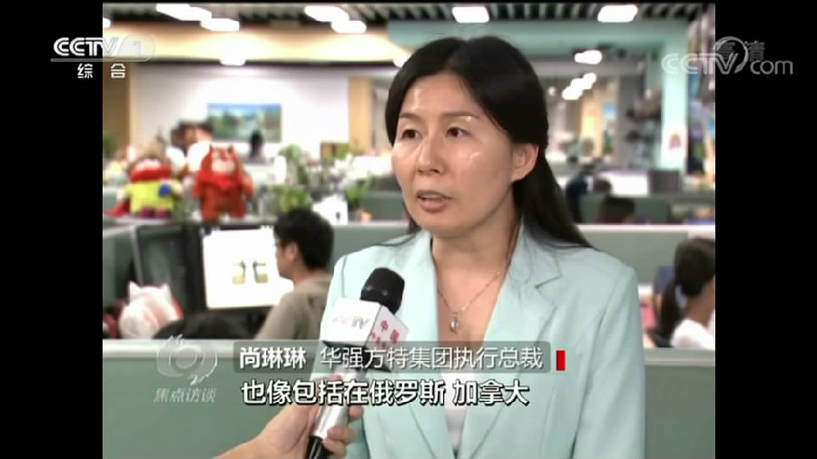 華強方特集團執(zhí)行總裁尚琳琳在接受《焦點訪談》采訪時介紹說:“華強方特的動畫作品已經(jīng)出口到全球100多個國家和地區(qū),登陸索尼、探索頻道、Netflix、Nickelodeon等國際主流媒體頻道,電影還在包括俄羅斯、加拿大、秘魯、哥倫比亞等30多個國家和地區(qū)的院線持續(xù)上映。”