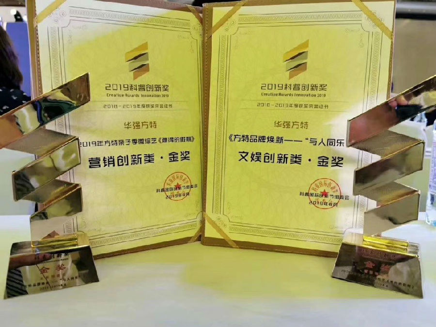 8月22日至23日,“2019科睿國際創(chuàng)新節(jié)”在北京舉行。本屆科睿創(chuàng)新節(jié)聚焦科技、商業(yè)、文化、營銷、品牌、服務、娛樂、產品等多方向,關注行業(yè)發(fā)展的創(chuàng)新驅動力,并與企業(yè)共同探索新時代創(chuàng)新的重要課題。華強方特集團憑借今年成功的品牌煥新升級行動和出眾的品牌營銷思路,榮獲科睿創(chuàng)新節(jié)大會頒發(fā)的兩項大獎:“營銷創(chuàng)新類?金獎”和“文娛創(chuàng)新類?金獎”。